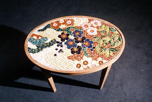トイレの洗面台のガラスモザイク製作中。00/11/19